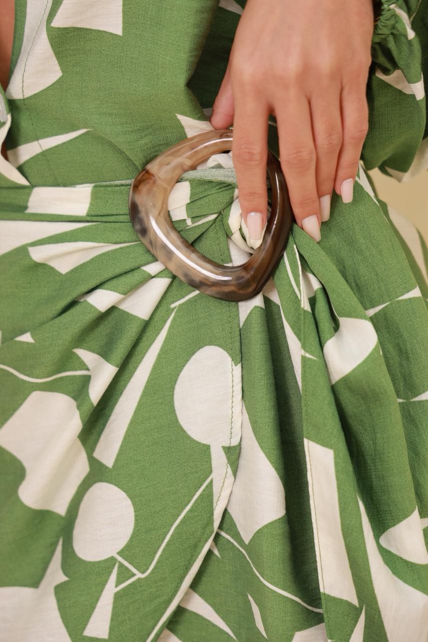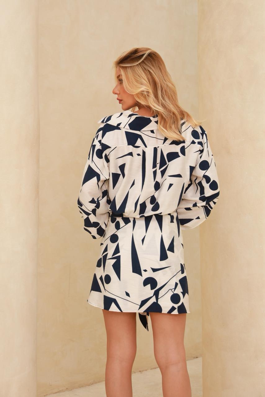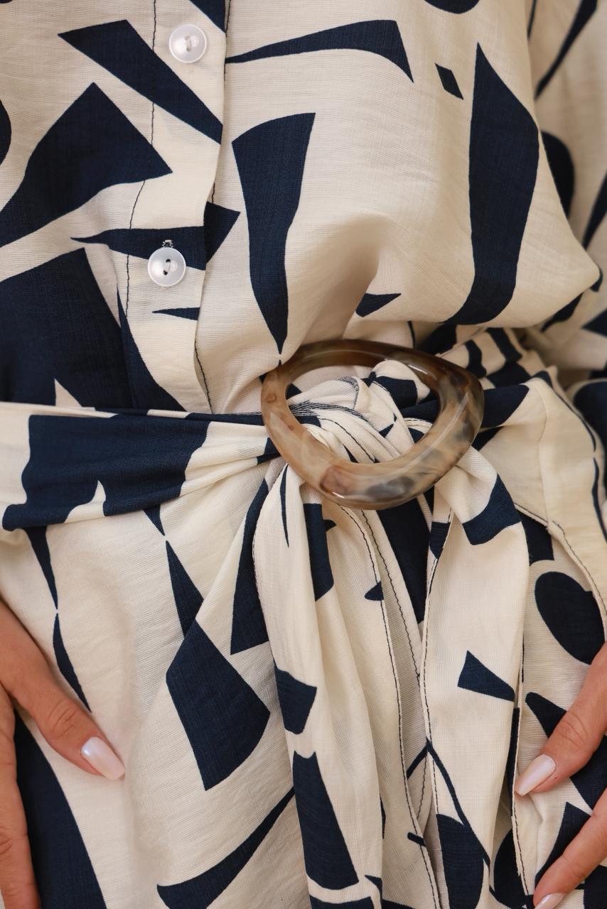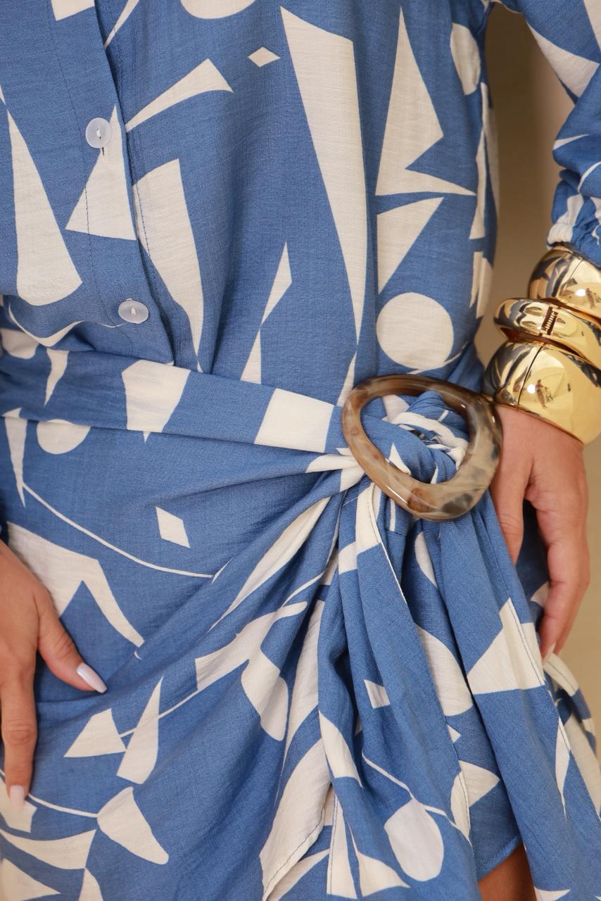 Conjunto de camisa alongada com saia pareô estampado com fivela natural.