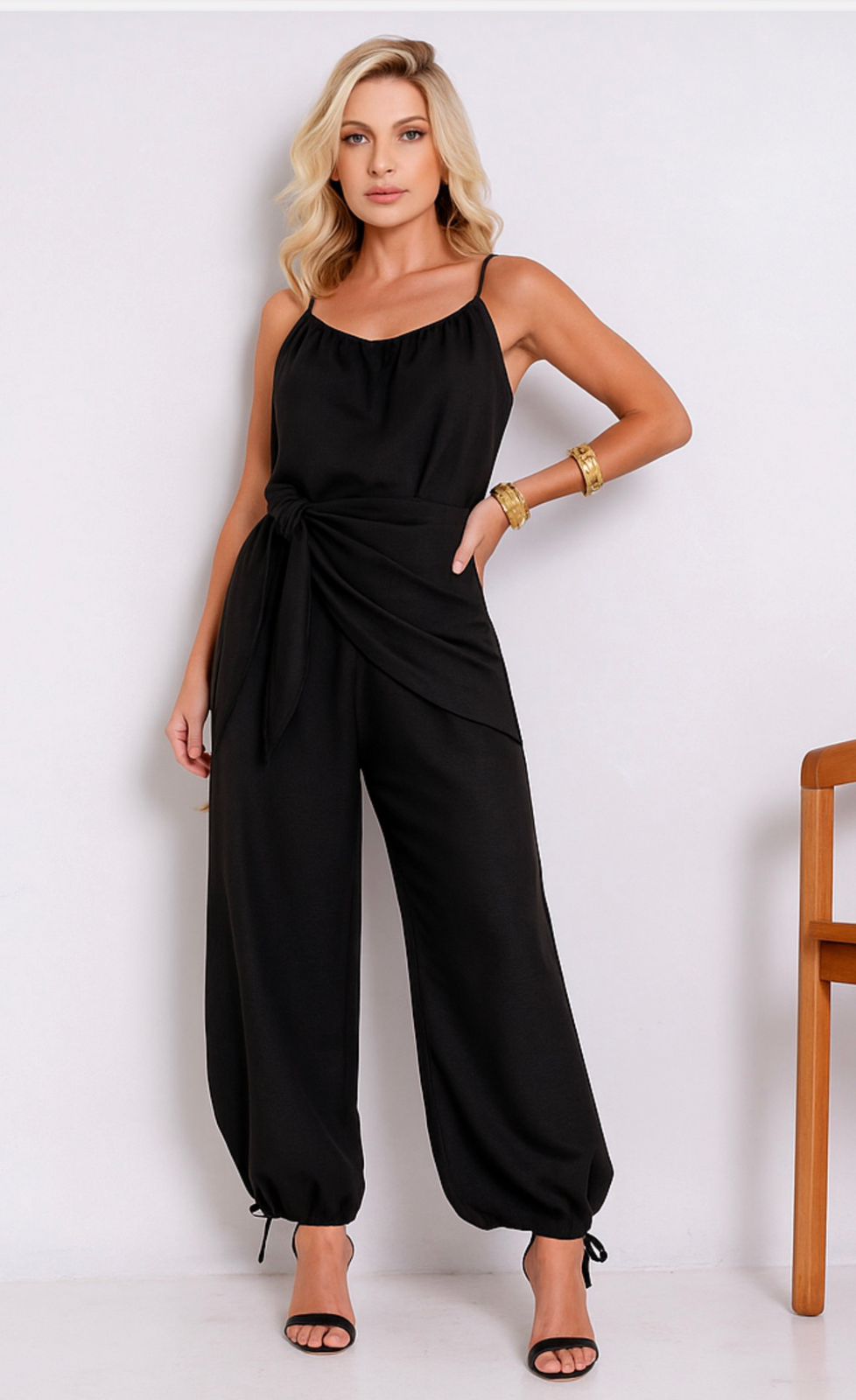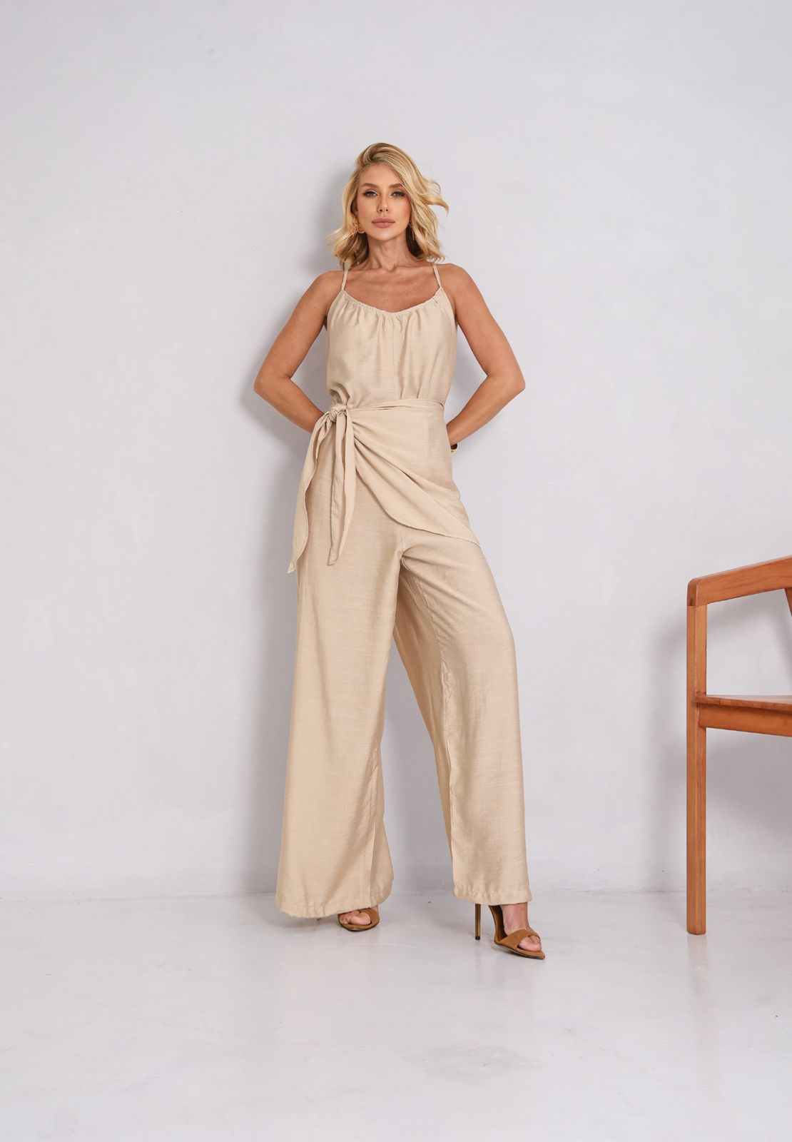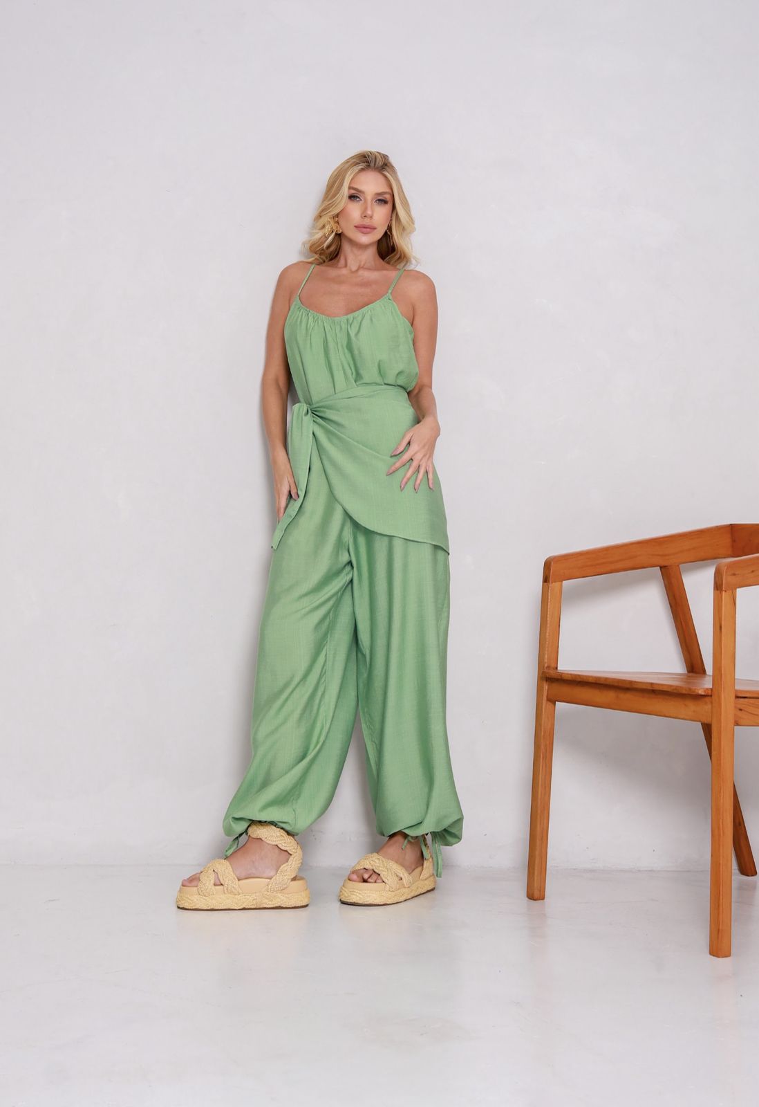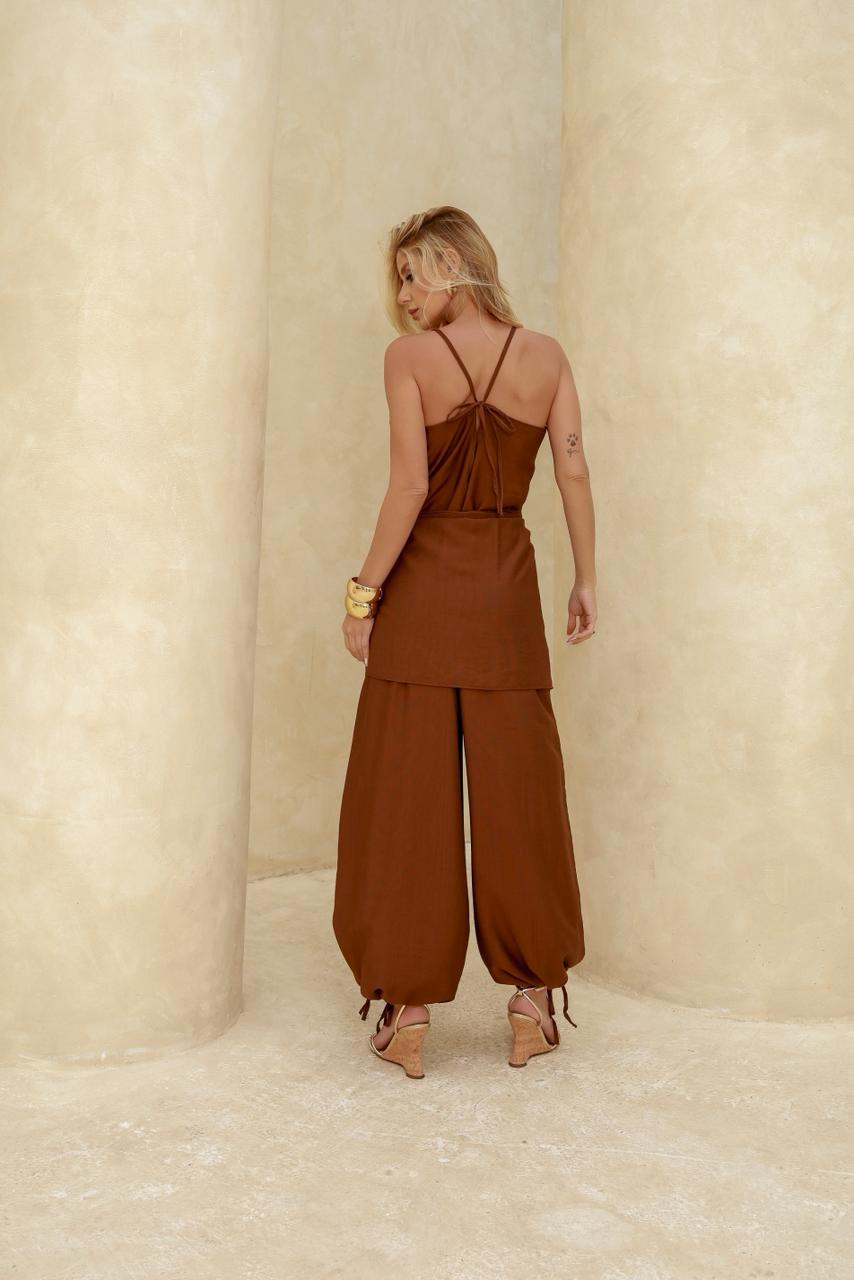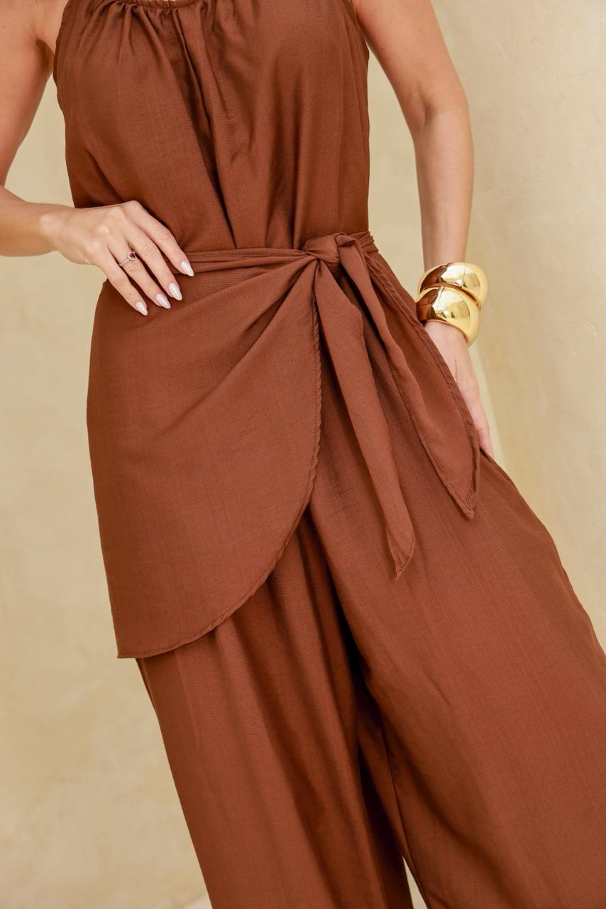 Descrição: Conjunto de macacão multiformas com pareô.